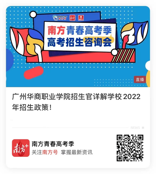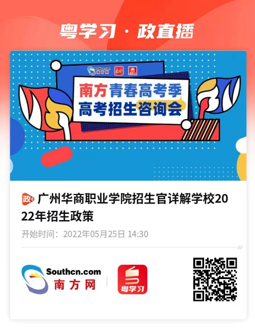 5月25日下午2:30分起,“南方青春高考季-高考招生咨询会”活动邀请广州华商职业学院、广州华立科技职业学院招生办主任做客演播室,为你详解学校办学特色及2023年招生政策。